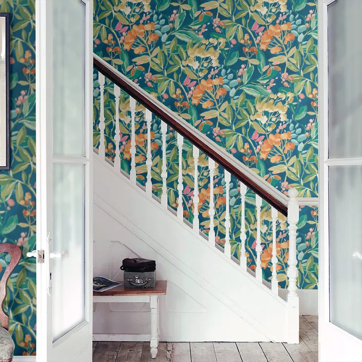 This bold, oversized floral design brings the untamed beauty of nature to life through fluid brushstrokes and spontaneous markings. Delicate petals, berries, and leaves overlap and intertwine, forming a vibrant, organic composition that stimulates the senses. The design is brought to life through a harmonious blend of varied tones.