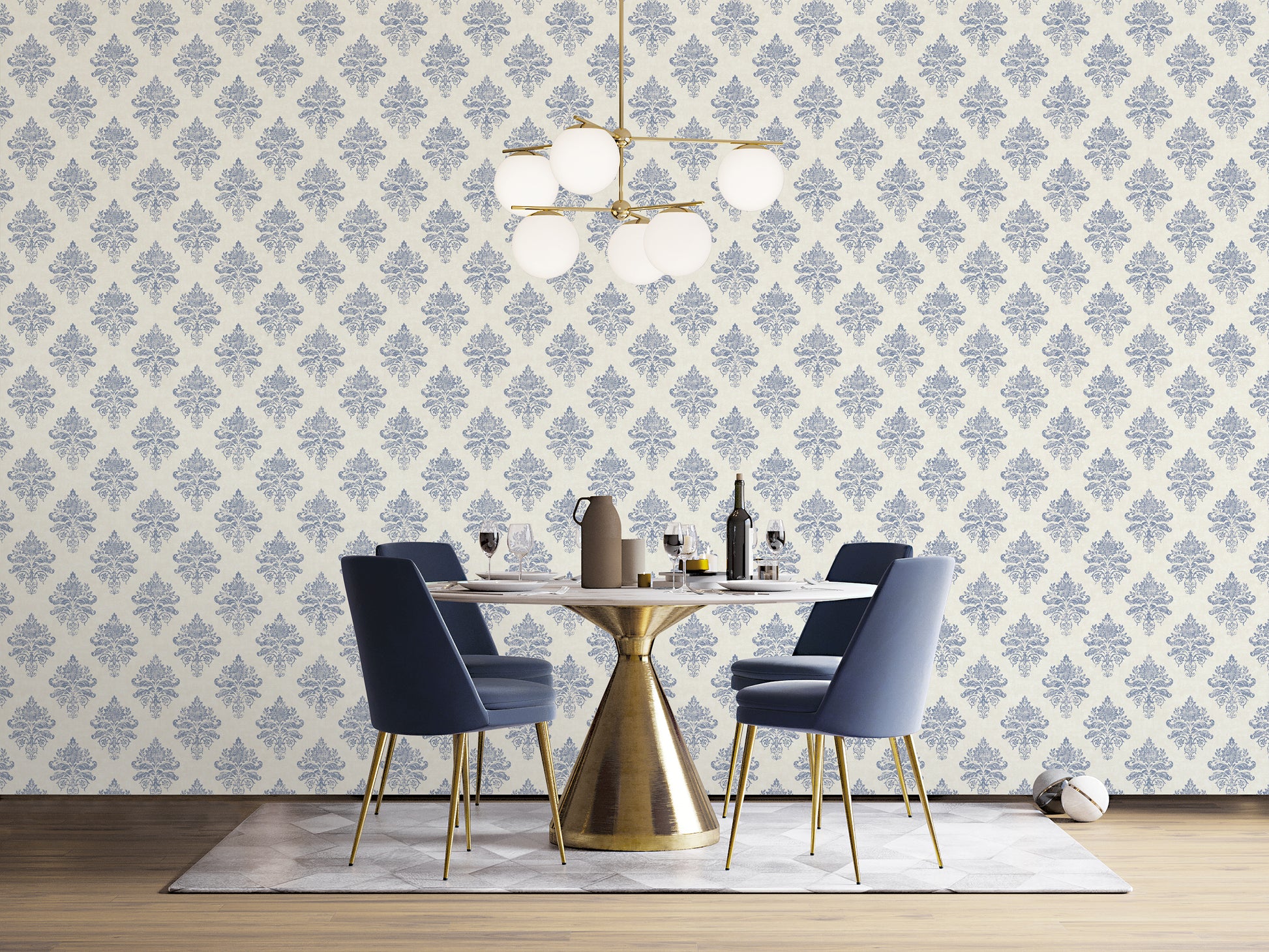 Medallion Damask Light grey / Blue