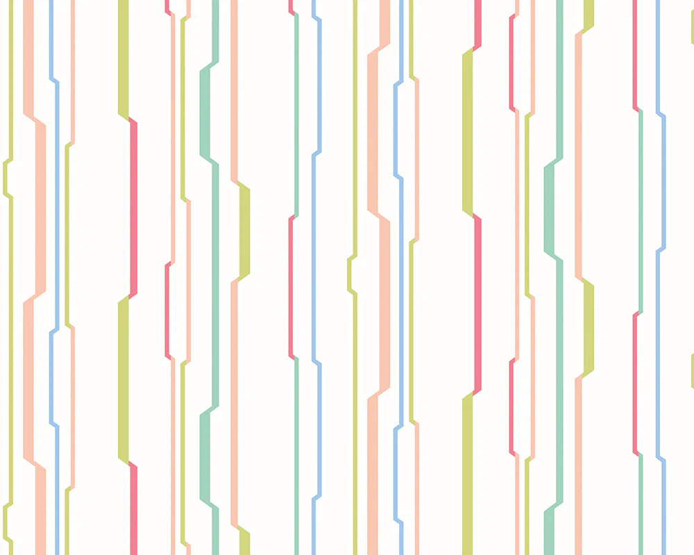 Wibble wobble, jelly on a plate! Or in this case, we’re thinking more about the irregular seaside stripe that cascades down this fantastic coordinate. Available in four cheerful colourways, team with feature designs from our kids’ collection to complete your decorating story.